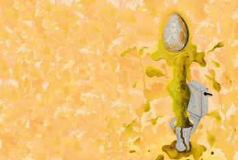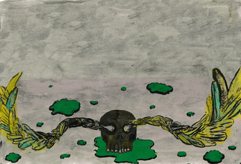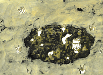A text game built up out of image and audio descriptions. An audio track made by three trans people trying to make bogland sounds with their mouths. And a load of animated watercolour paintings of bog bodies, sprouting skulls and porcelain toilets.